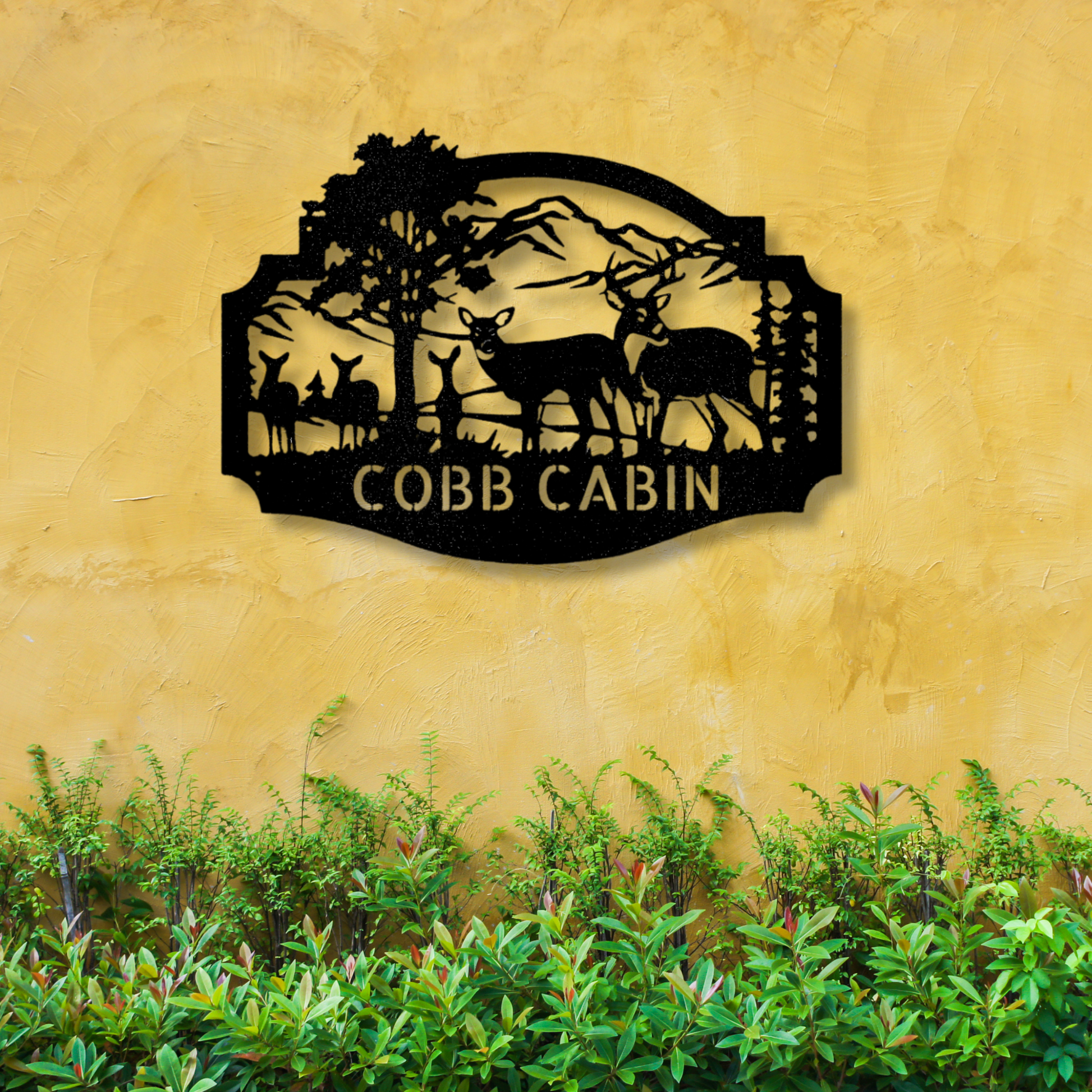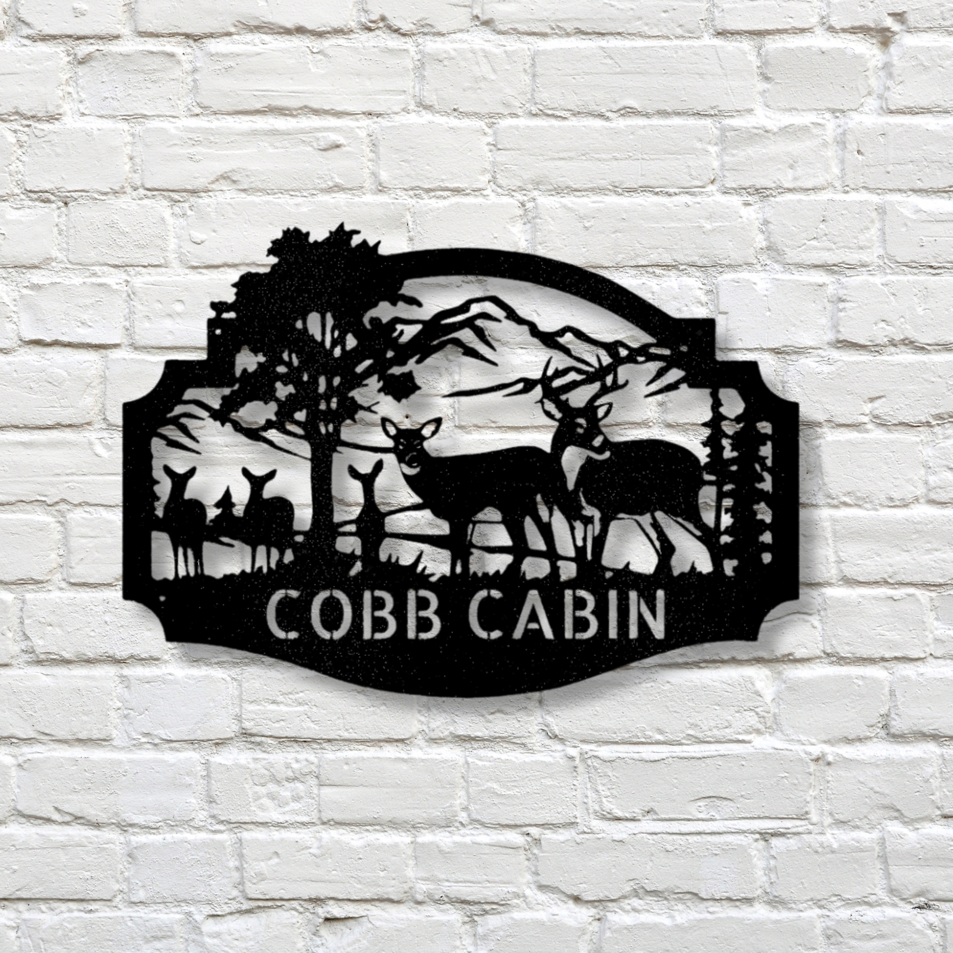Personalized Deer Family Metal Art Sign, Custom Deer Metal Wall Decor, Cabin Wall Hanging, Indoor Metal Art Signs, Birthday Gift For Dad, Family Name Sign.