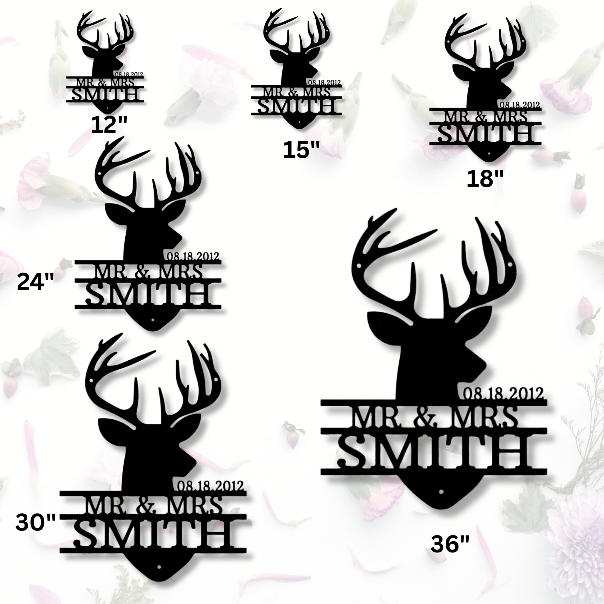 Personalized Deer Head Metal Sign, Custom Deer Head Couple Gift, Wedding Anniversary Gifts, Valentine Gift, Wall Art Decor, Housewarming Gifts.