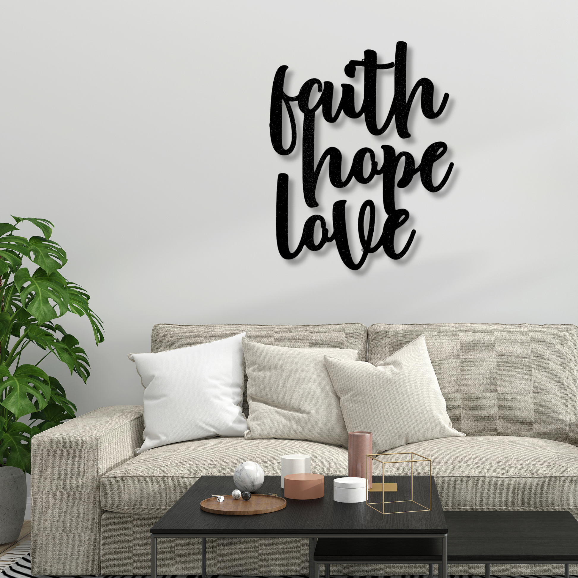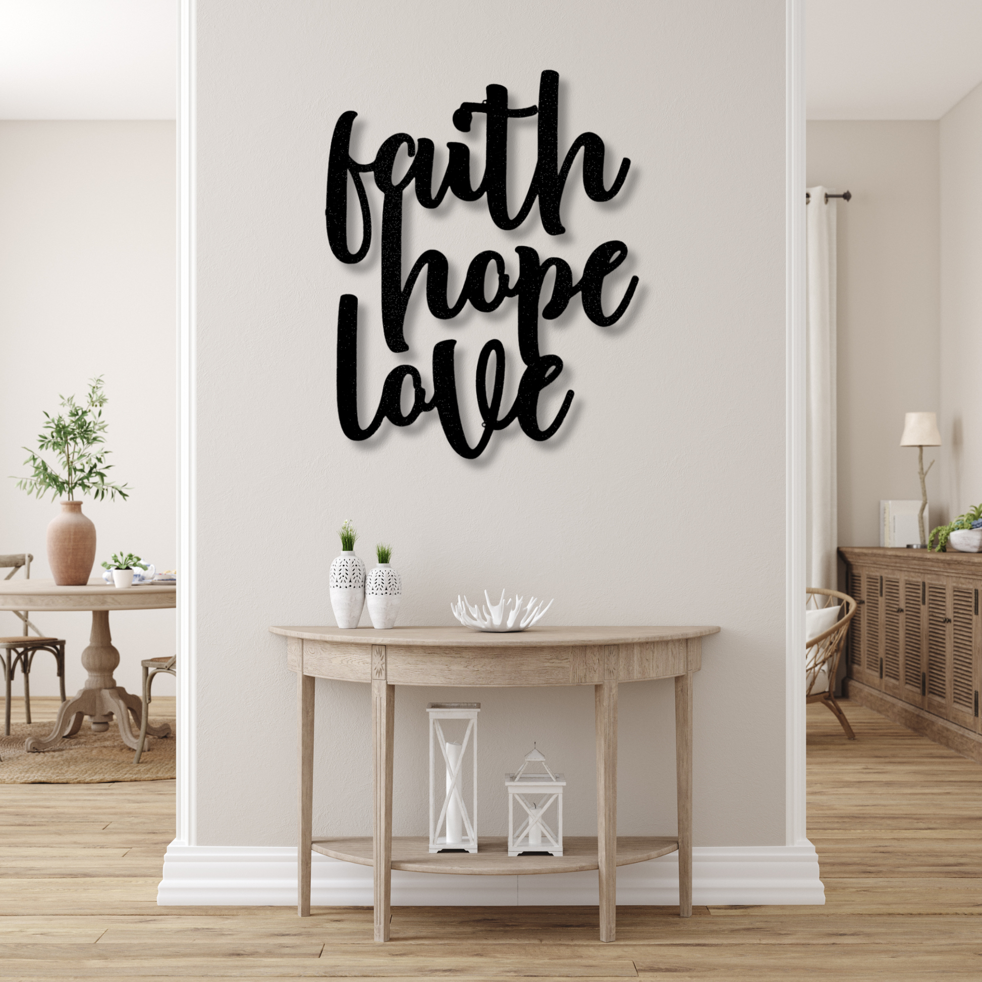 Faith Hope Love Script Metal Sign, Inspirational Metal Art, Faith Wall Decor, Christian Wall Hanging, Hope Love Metal Art, living room decor