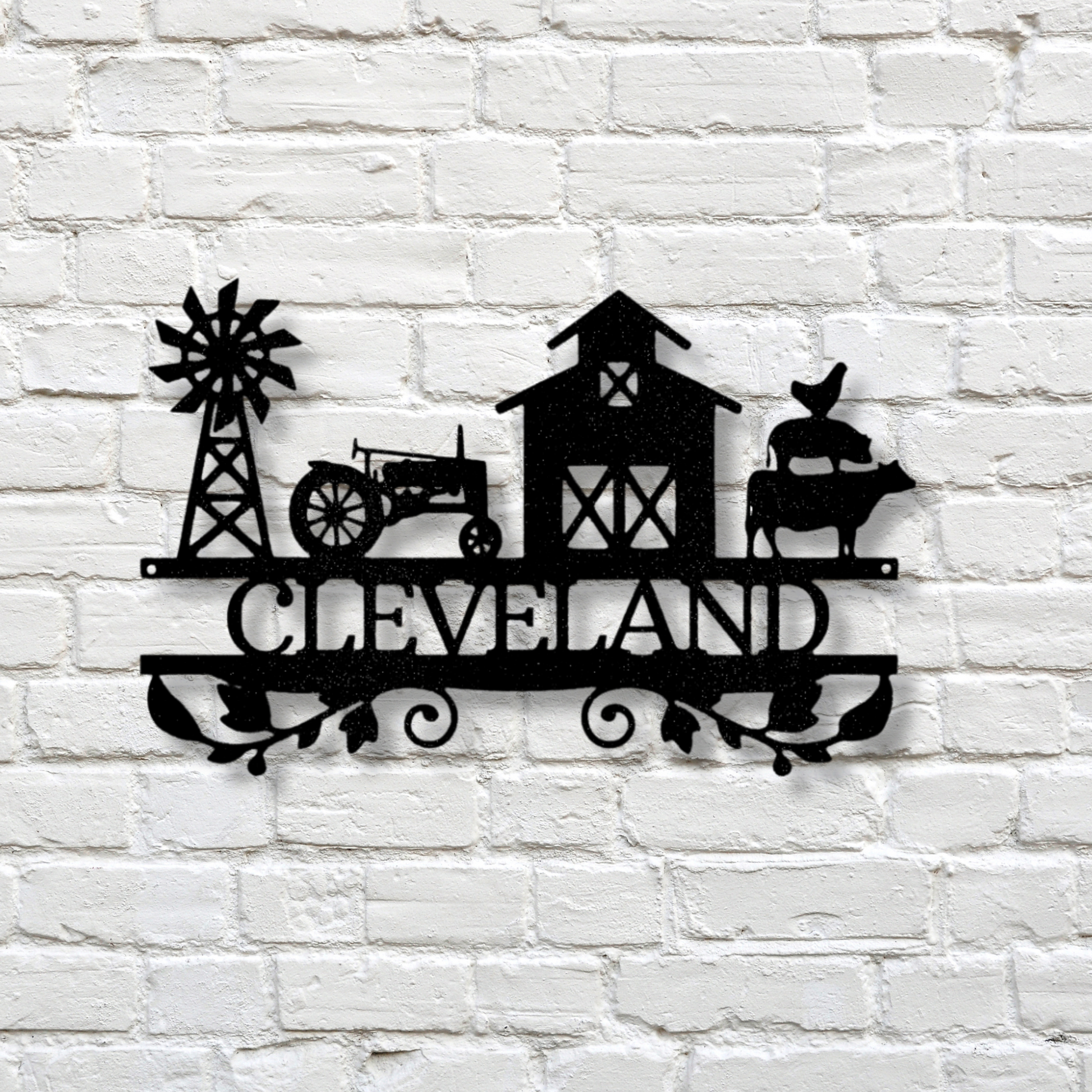 Custom Farm Sign With Tractor, Barn, Windmill And Farm Animals, Personalized Family Farm Address Sign, Outdoor Hangings.