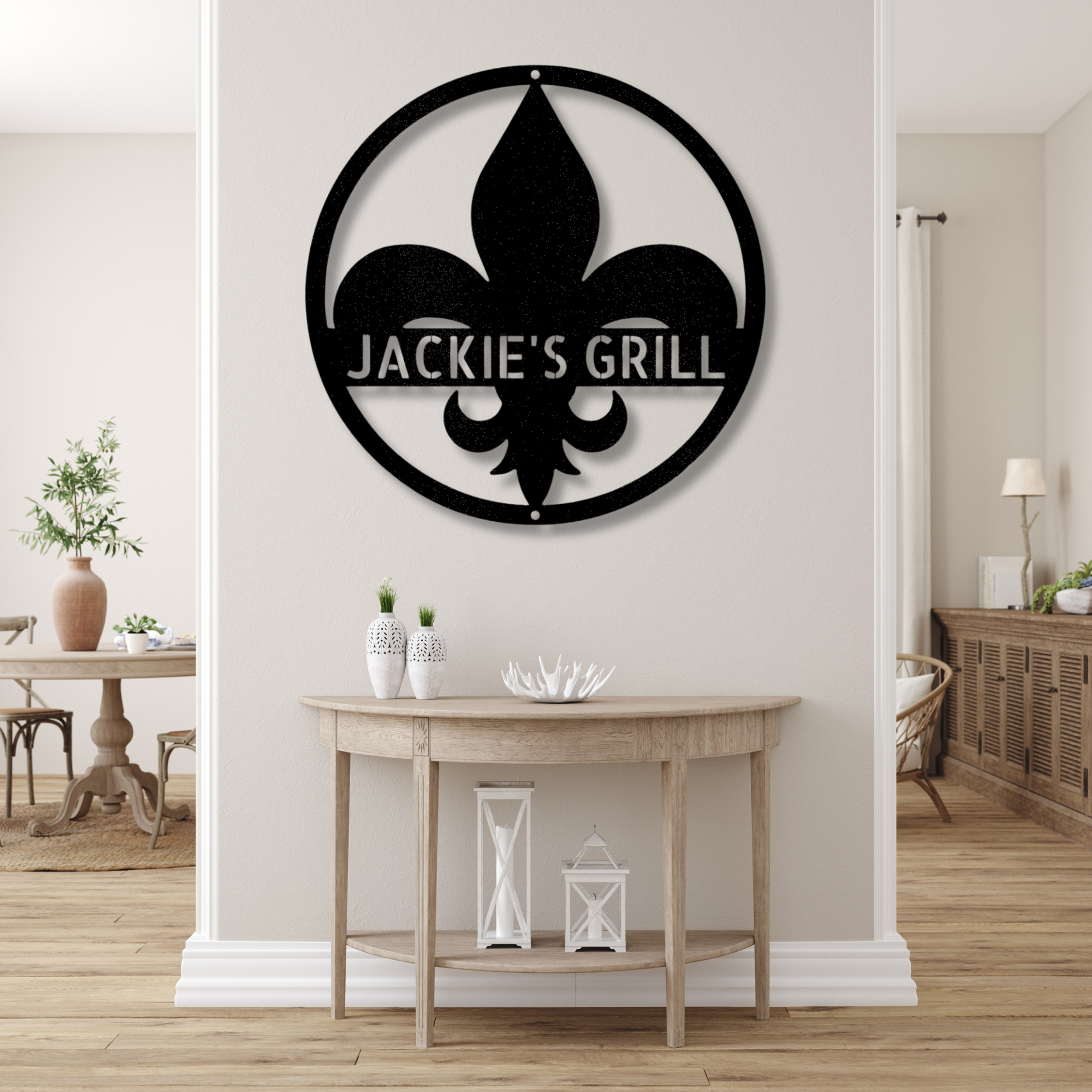 Custom Fleur De Lis Metal Sign, Personalized Name Front Door Art Sign, Housewarming Monogram, Welcome Wall Art Decor, Front Door Hangings.