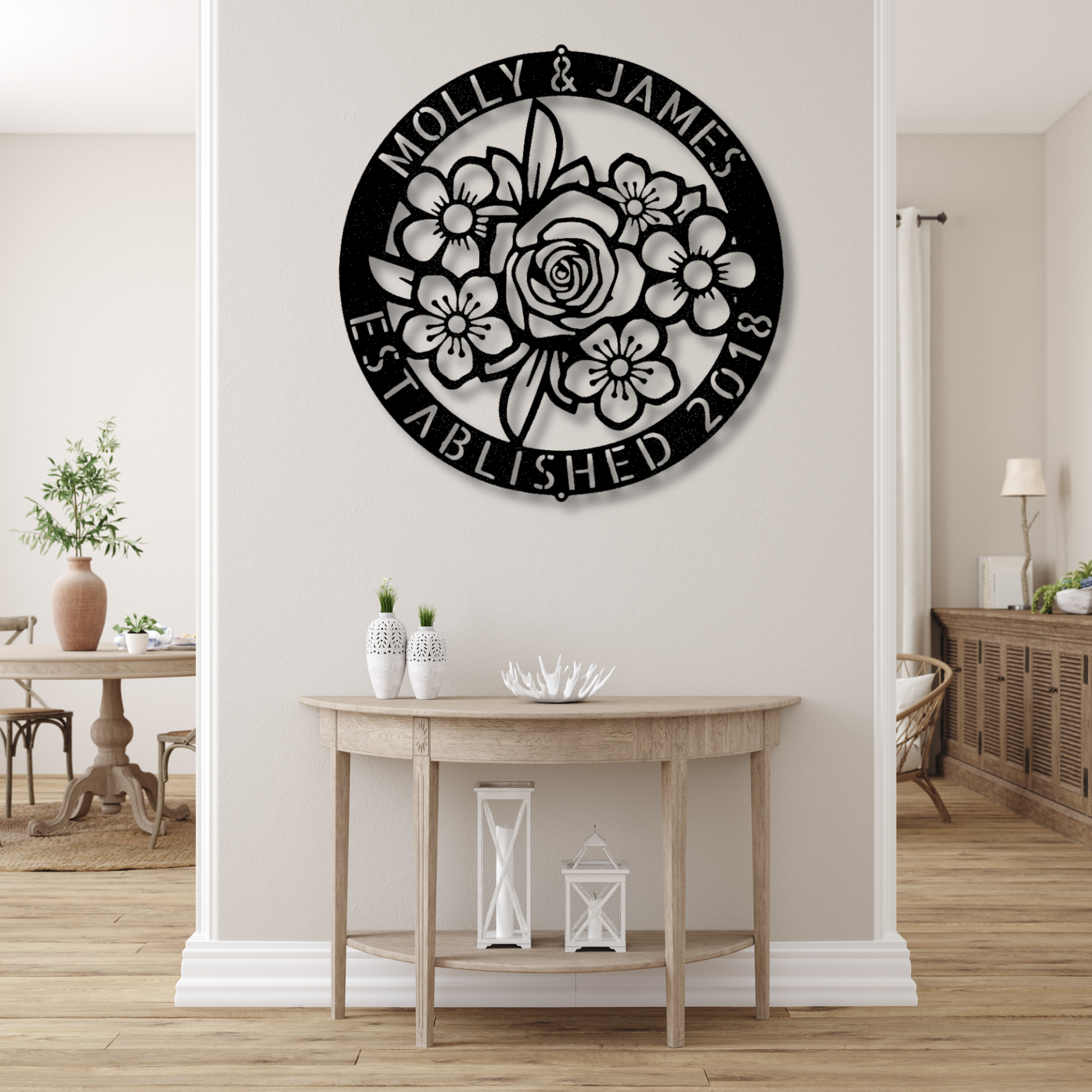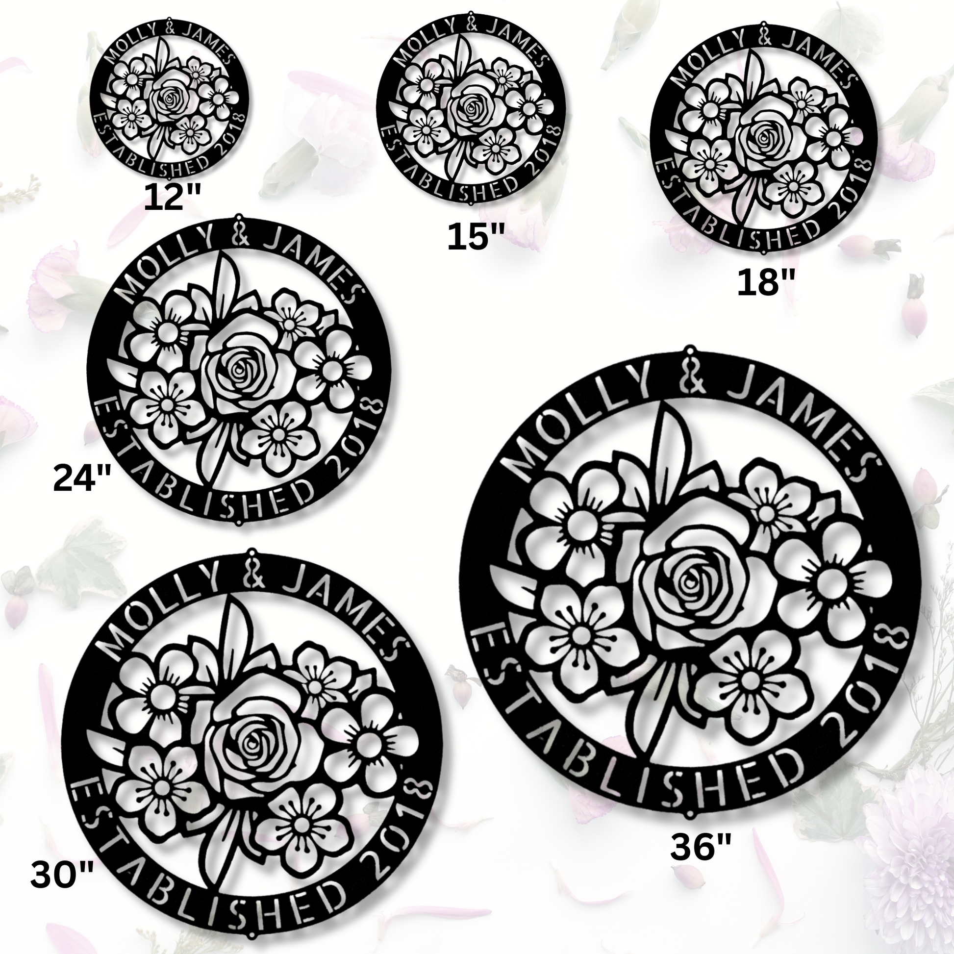 Personalized Floral Ring Metal Steel Sign, Custom Name Floral Monogram For Newly Weds, Anniversary Gift , Housewarming Gifts, Wedding Gift