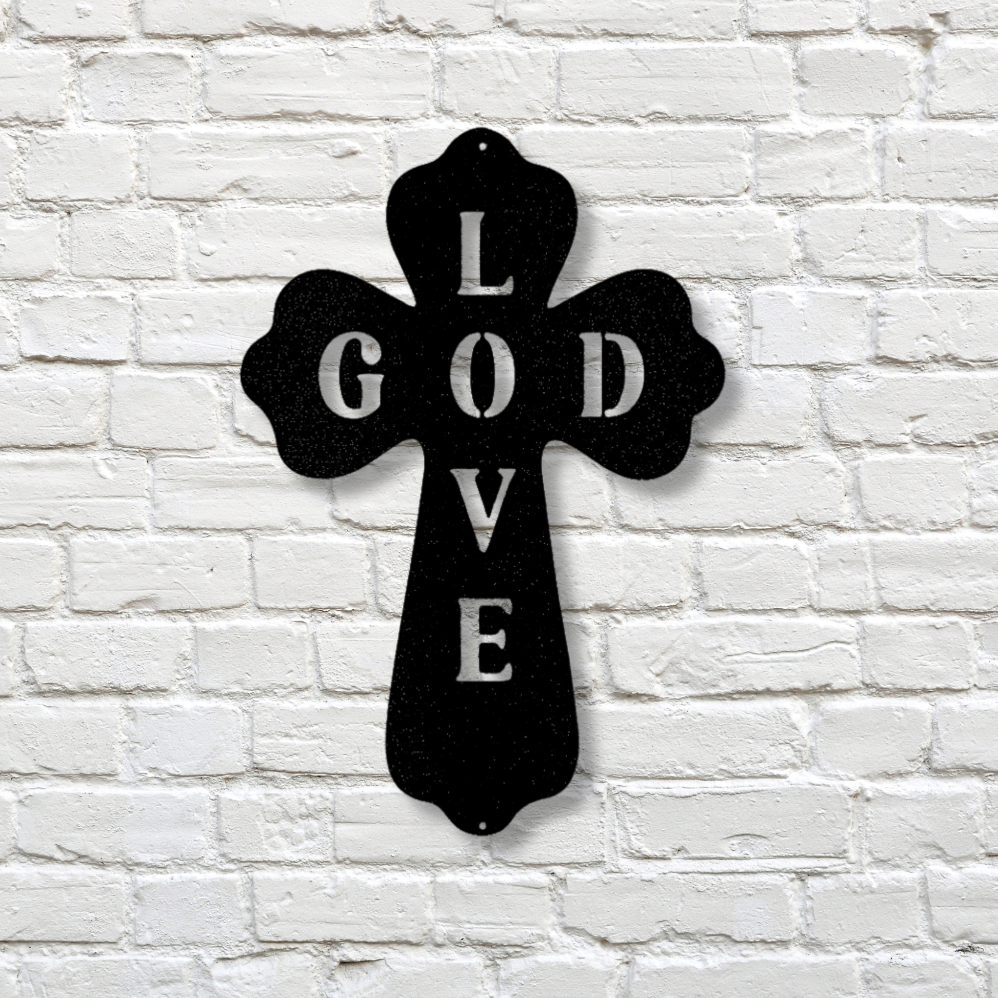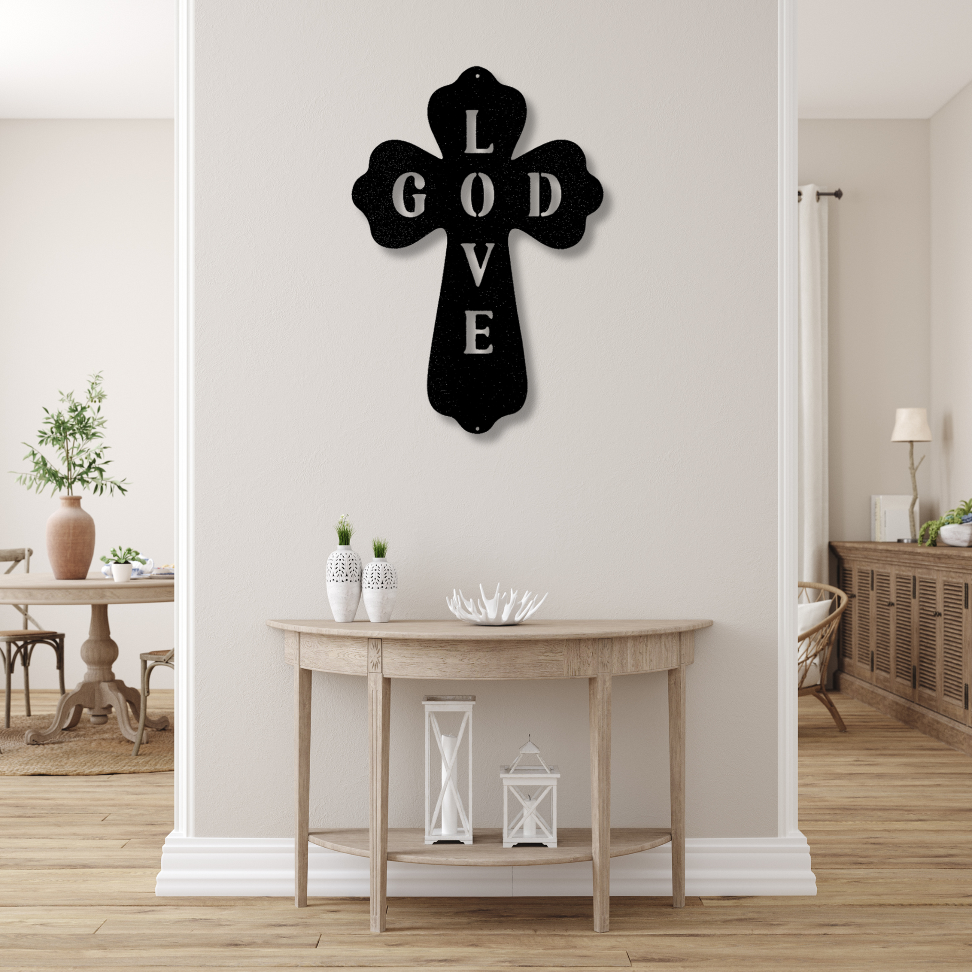 God Love Metal Sign, Faith Cross Monogram, Living Room Wall Hanging, Thanksgiving Gift For Her, Daughter To Mother Gift, Christian Wall Art Decor.