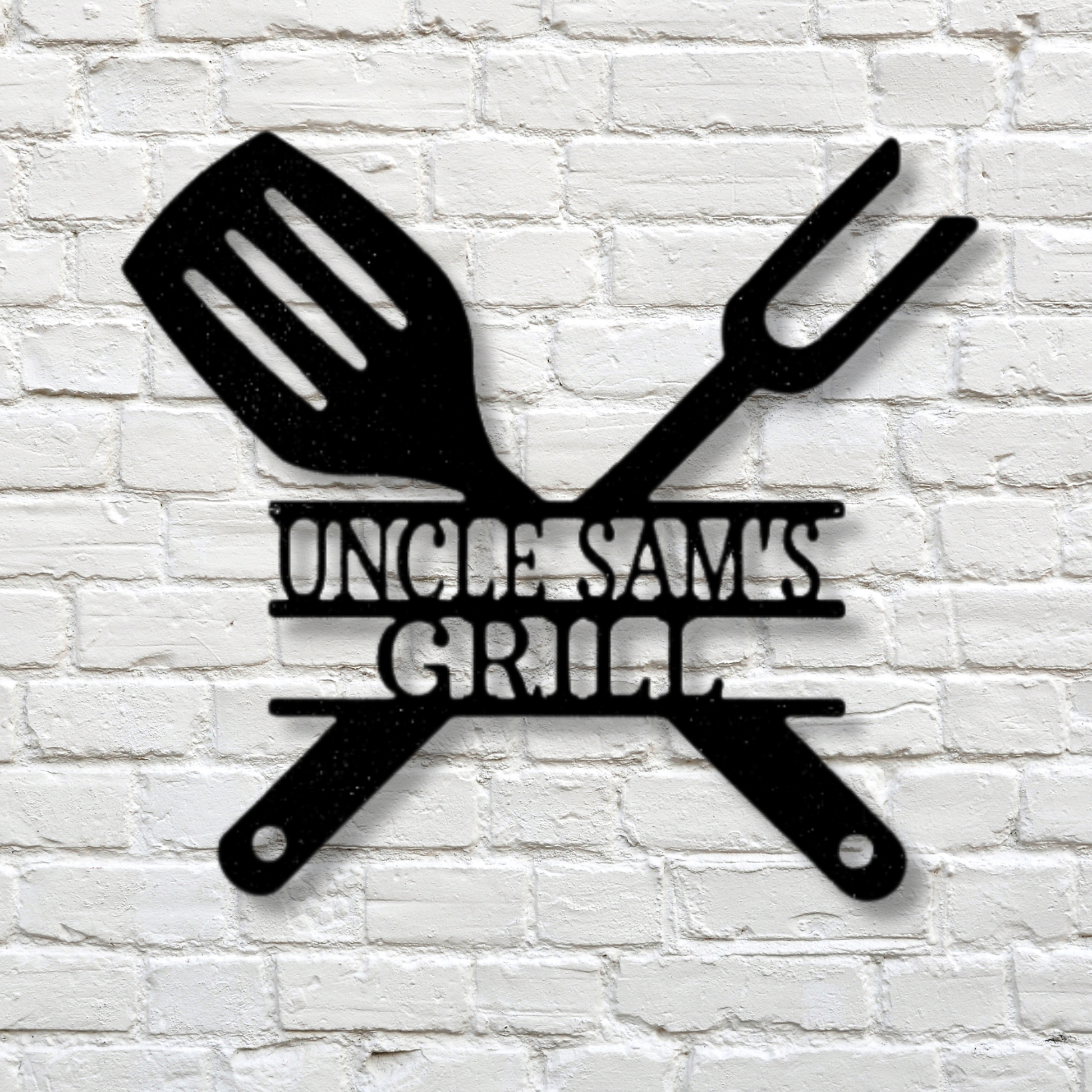 Custom Grilling Utensils Metal Sign, Personalized Name Gift For An Amazing Grill Cook, Grilling Station Decor, Festive Season Housewarming Plaque, Birthday Gift For Him.