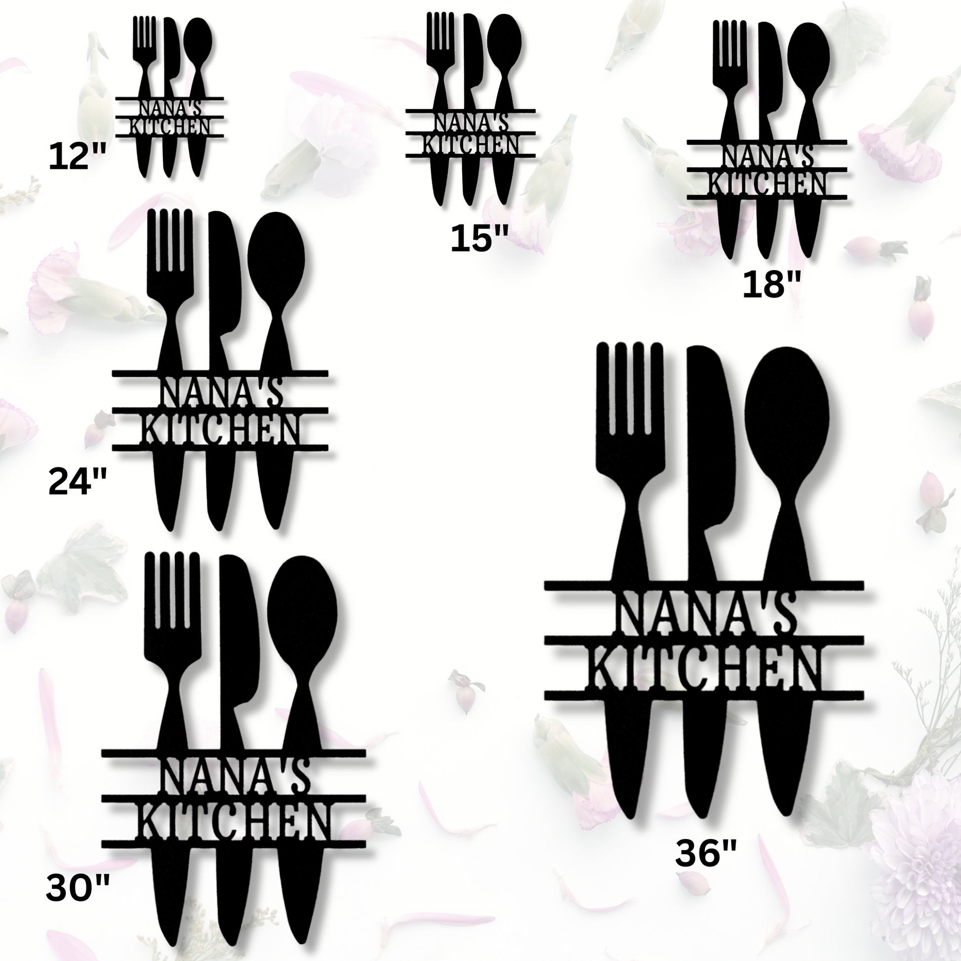 Kitchen Utensil Metal Sign, Personalized Kitchen Sign with Names, Grandma's Nana's Gift Mother's Day Gift, Indoor Outdoor Kitchen Wall Decor