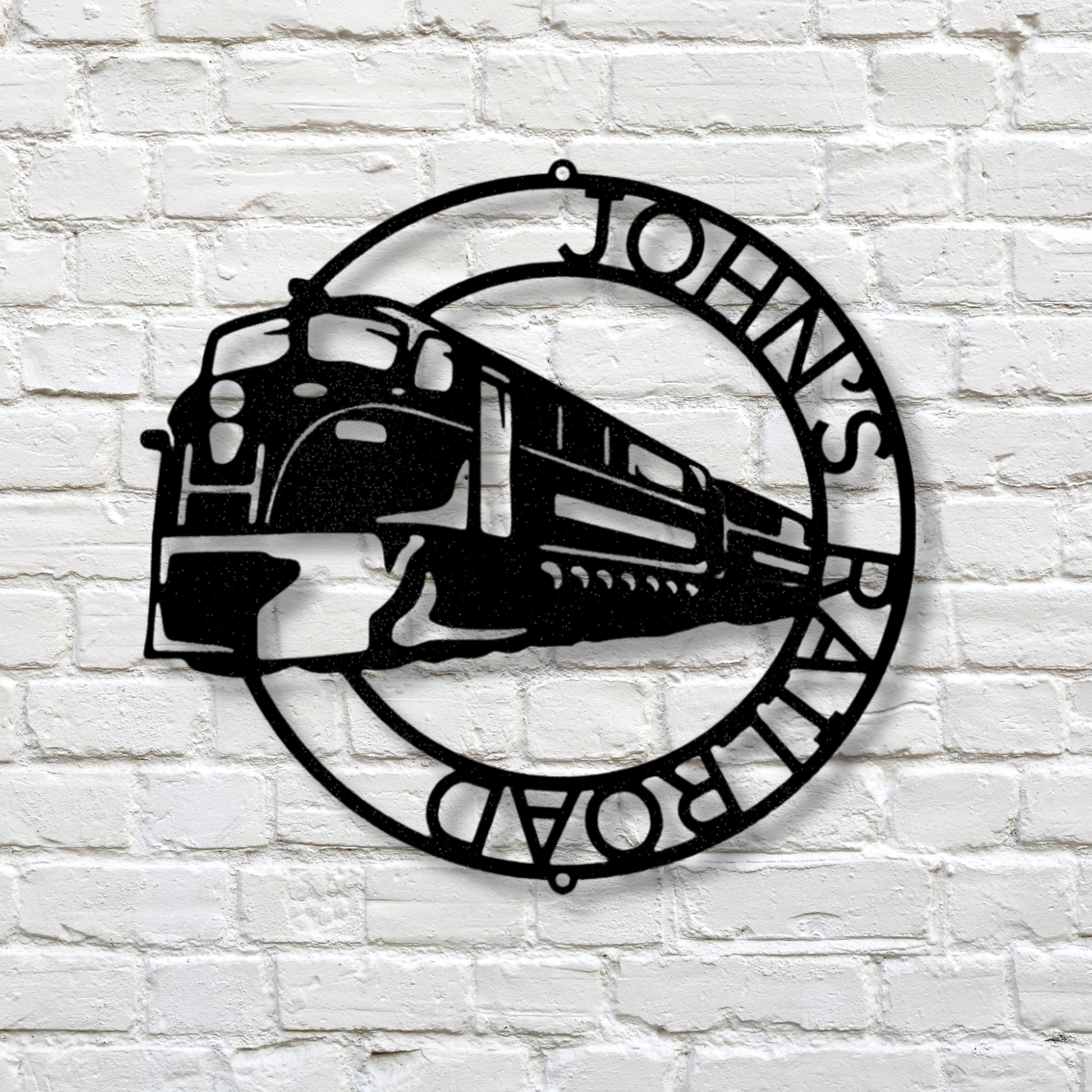 Modern Train Ring Monogram Metal Sign, Personalized Train Sign, Custom Name Sign, Family Name Metal Sign, Train Lover Gift, Home and Living