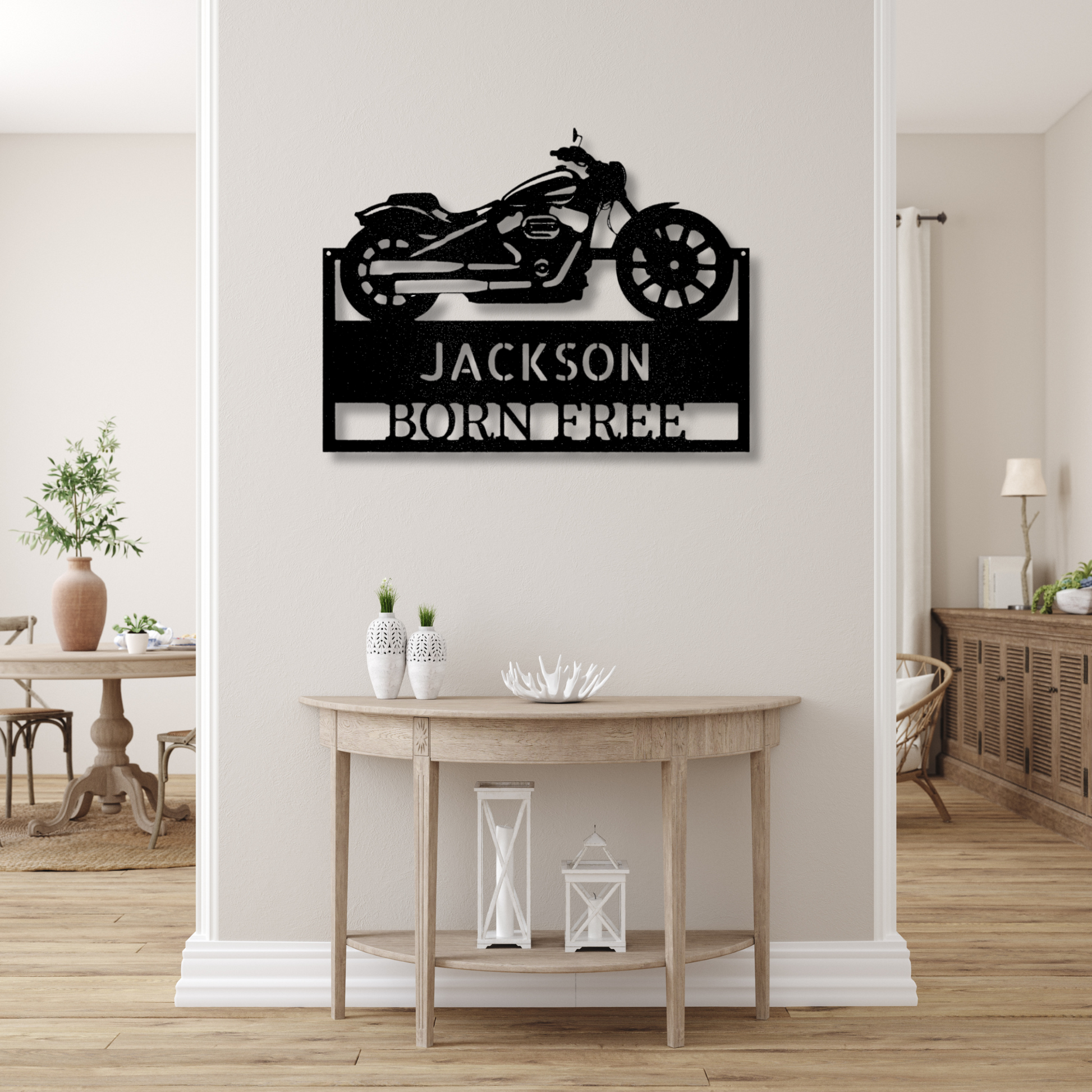 Custom Moto Shop Metal Sign, Personalized Name Motorcycle Monogram, Garage Wall Art Hanging, Birthday Gift For A Rider, Wall Art Decor.