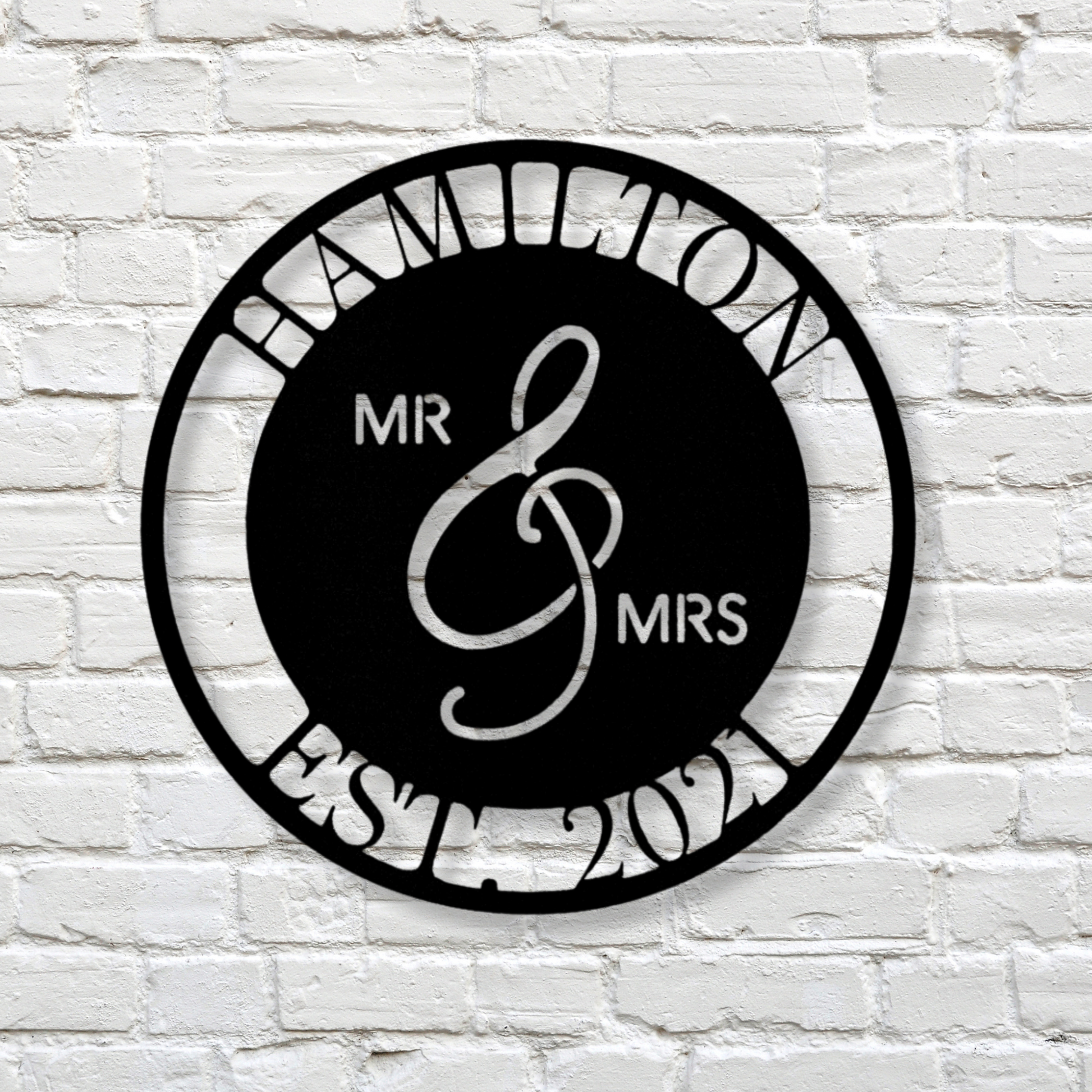 Mr. and Mrs. Metal Steel Sign, Last Name Monogram Sign, Wedding Anniversary Gift, Married Couple Gift, Engagement Gift, Wedding Wall Decor