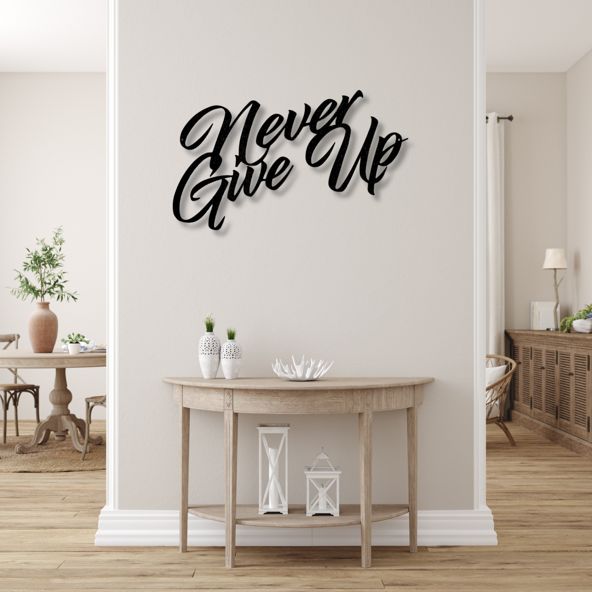 Never Give Up Metal Sign, New Home Sign, Housewarming Gift, Living Room Decor, Wall Hanger, Christmas Gift, House Closing Gift Gift For Her
