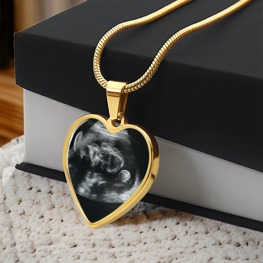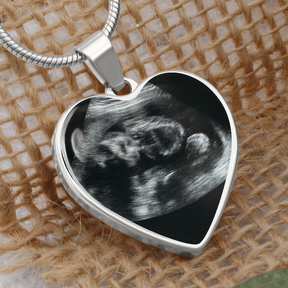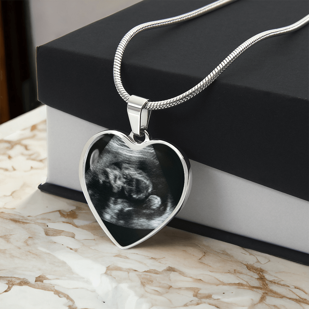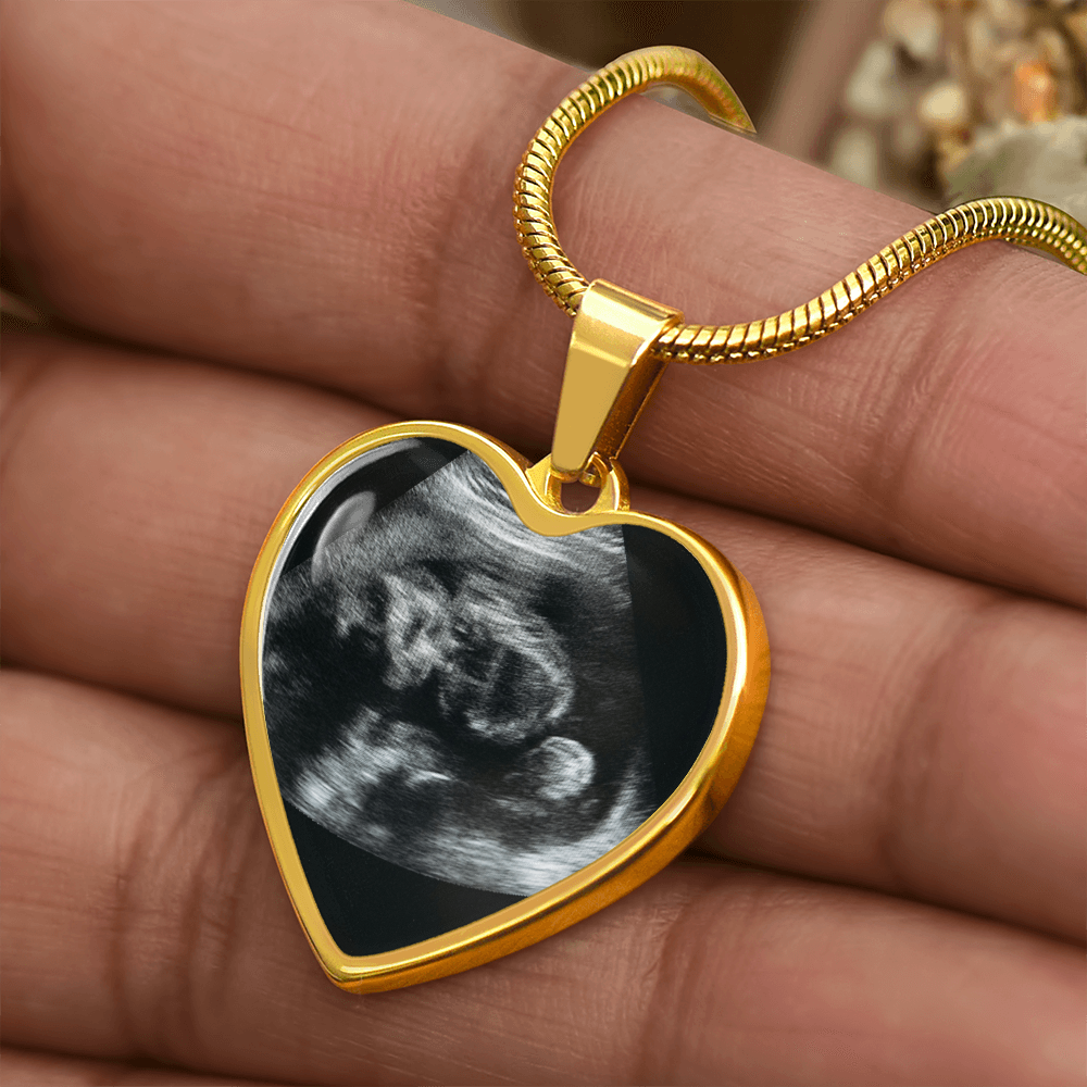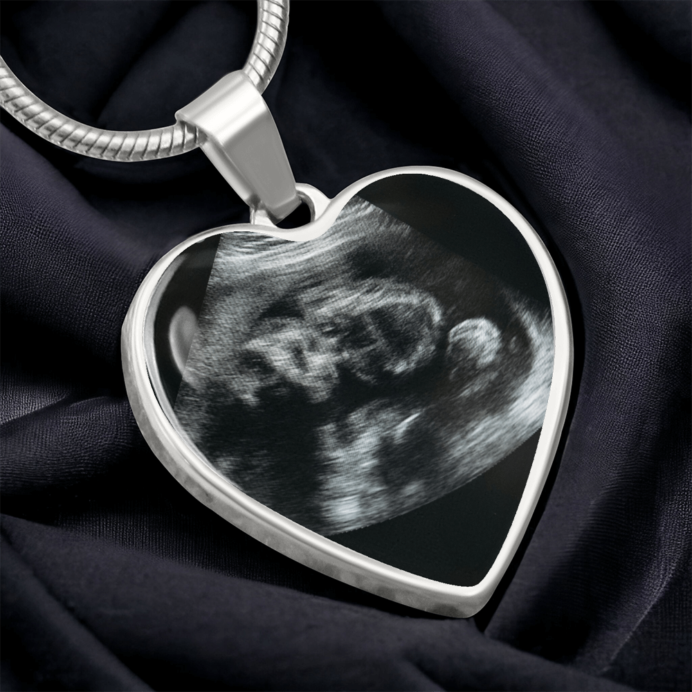 Personalized Baby Scan Photo Necklace, Engraved Baby Name Pendant, Grandma New Parent Gift, Pregnancy Announcement Picture