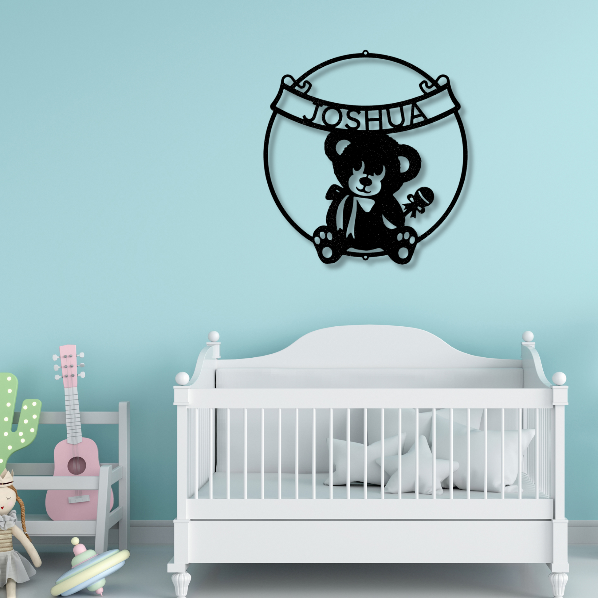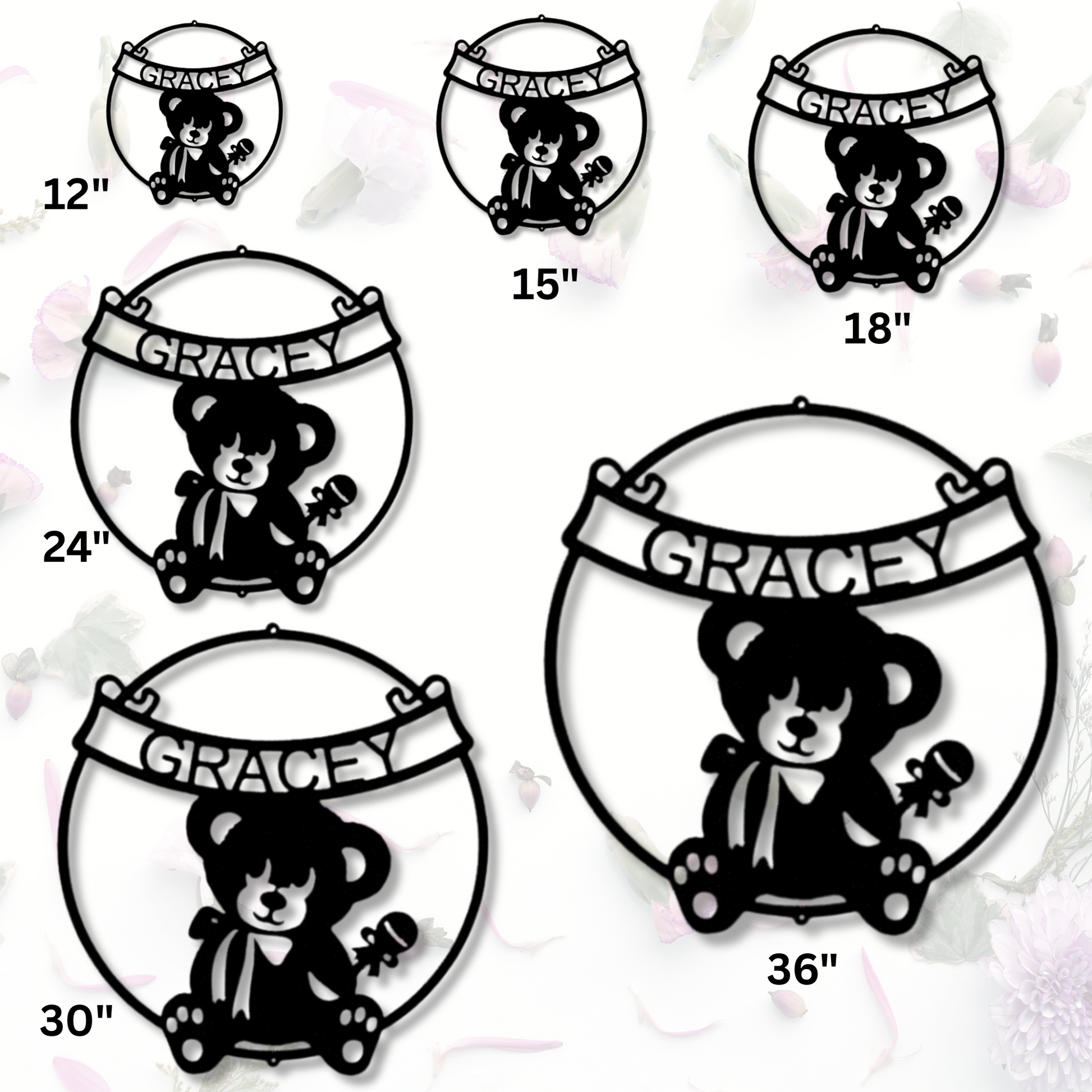 Custom Teddy Bear Metal Sign, Personalized Name Teddy Wall Decor, Kids Room Wall Art Sign, Birthday Gift For A Newborn, Baby shower Gift.