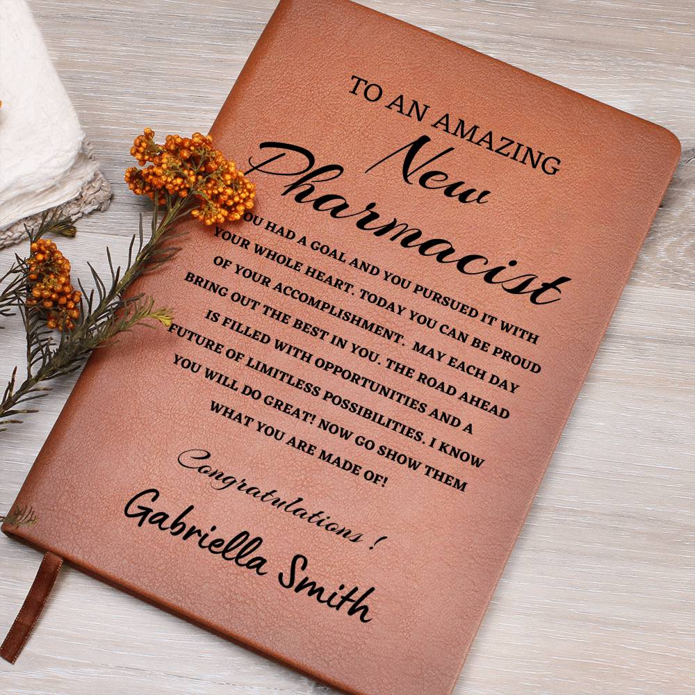 To A New Pharmacist Journal, Custom Leather Journal, Pharmacist Graduation Gift, Personalized Name Journal, New Pharmacist Appreciation Gift, New Job Gift