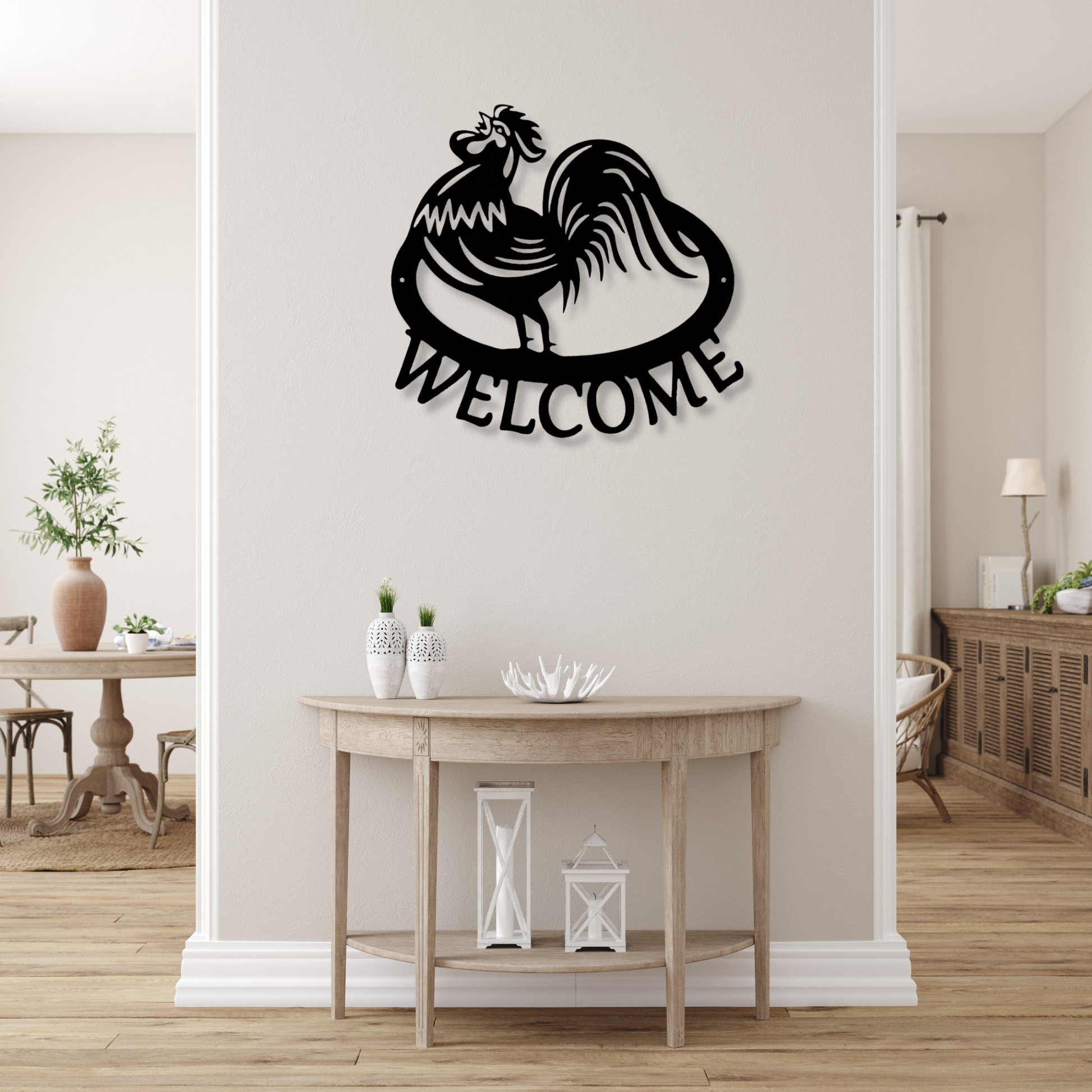 Welcome Rooster Metal Sign, Front Door Signage, Porch Decor, Patio Metal Wall Art, Welcome Sign for Front Porch, Welcome Metal Sign Entryway